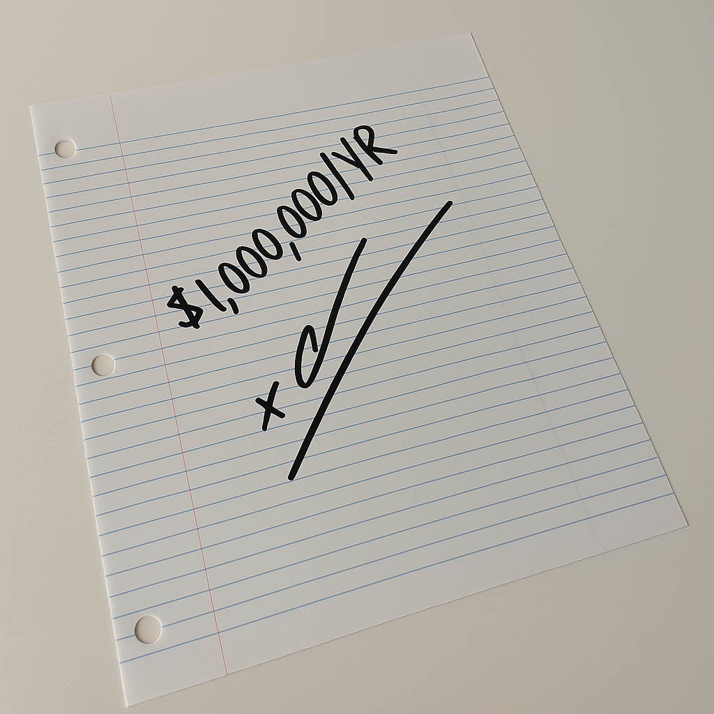 To $1M per year in personal income, all cold, self-generated.